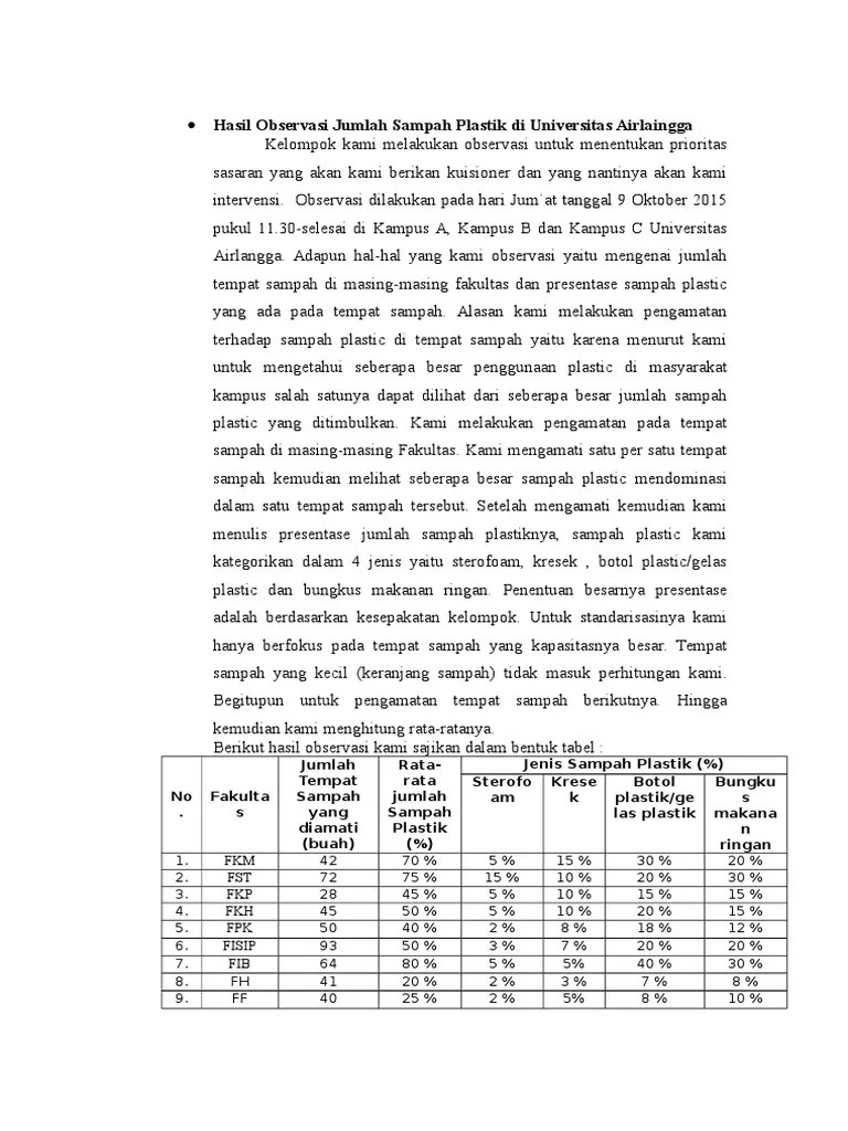 Observasi Tentang Sampah : Doc Laporan Hasil Observasi Gomik Gomik Academia Edu : Limbah sanggup dibagi menjadi dua yaitu limbah hitam dan limbah rumah tangga.. Seperti dalam kasus kali ini yakni tentang observasi sampah, maka kalian perlu terjun ke lingkungan untuk melakukan pengamatan serta mengumpulkan data terkait . Teks sampah laporan hasil observasi, kunci jawaban sma kelas 10 bahasa indonesia halaman 32. Sampah alam merupakan sampah yang diproduksi oleh . Banyak sekali bencana yang ditimbulkan akibat pembuangan sampah . Contoh laporan hasil observasi tugas teks laporan observasi lingkungan: